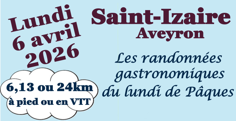 Le lundi de Pâques, le 6 avril 2026, l’association « Chemin Faisant » de Saint-Izaire organise ses traditionnelles randonnées gastronomiques, un événement attendu par les amateurs de marche, de VTT et de découvertes culinaires. Trois parcours de différentes distances seront proposés : 6 km, 13 km et 24 km, permettant à chacun de choisir selon ses capacités […]