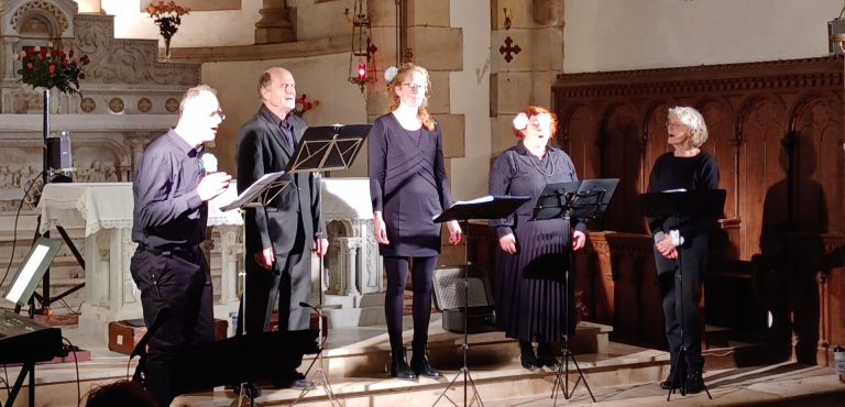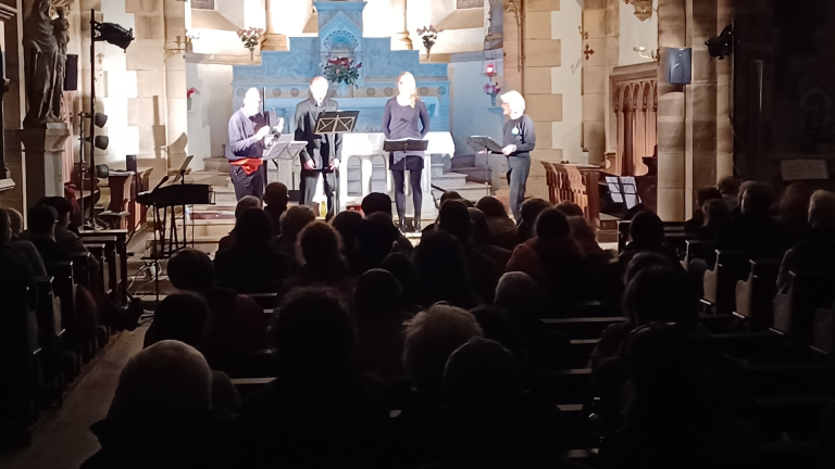 Vendredi 12 décembre, l’église de Saint-Izaire a accueilli le tout premier concert du « Chœur élastique ». Près de 80 personnes avaient fait le déplacement pour découvrir cet ensemble vocal naissant qui a proposé, dans un cadre patrimonial, un répertoire mêlant chants baroques polyphoniques et chants de Noël. La justesse des voix, la richesse des harmonies, ainsi qu’une mise en scène élégante, ont rapidement conquis le public, avec une forte émotion, palpable dès le début du concert. Une soirée qui fera date pour les chanteurs et les spectateurs qui ont pu ensuite partager leurs impressions lors du vin chaud offert à l’auberge.