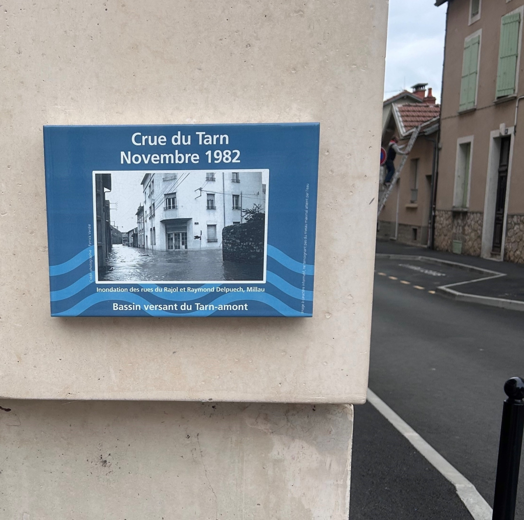 Le projet vise à installer des « repères de crues photos » des événements exceptionnels ayant eu lieu sur le territoire, comme la crue de 2014. En installant ces photos imprimées sur plaque émaillée, à l’endroit où la prise de vue a été réalisée (voir l’exemple ci-contre dans une rue de Millau).